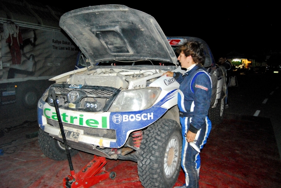 Pero no siempre todo es tan fácil en esta aventura. Alicia Reina y Dante Pelayo pueden dar ejemplos de esto, ya que algunos inconvenientes en la suspensión delantera de la Toyota N° 444 les provocaron un gran dolor de cabeza en el ingreso a territorio chileno. Tan complicados estuvieron que recién a la una de la madrugada del martes 14 pudieron llegar al campamento de Calama, en otra demostración de no querer bajar los brazos y de hacerse fuertes ante la adversidad.