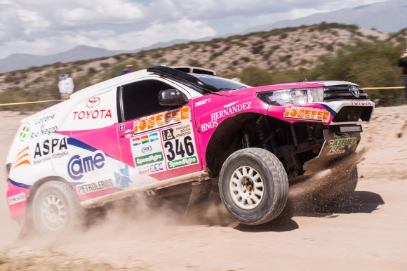 El Rally Dakar 2017 sigue siendo duro en todos sus aspectos. Más allá de eso Alicia Reina y Dante Pelayo con la Toyota SW4 pudieron resolver sin mayores inconvenientes esta tercera etapa de la competencia que unió San Miguel de Tucumán con San Salvador de Jujuy. Este tercer día de carrera fue muy intenso. En los 780 kilómetros que tuvo la jornada los participantes empezaron a encontrarse con duros caminos y sobre todo comenzaron a luchar frente a la altura. El binomio representante del sur argentino sigue siendo protagonista en esta competencia, la más dura y exigente del planeta. Hoy terminaron la etapa en P44. En la clasificación general ahora marchan en el P48. Mañana comienza una nueva historia. La carrera se mudará de Argentina a Bolivia. Allí los participantes se encontrarán con nuevos desafíos, nunca antes vistos. El nuevo destino es el remoto asentamiento minero de Tupiza, en el departamento de Potosí. La palabra de Alicia Reina: ¨ Ha sido un día duro en la primera parte tuvimos muy buen ritmo que no permitió avanzar un poco más en la clasificación. Sólo tuvimos un problema con un neumático pero nada más. El día se hizo extremadamente largo. Igual será mañana donde seguiremos incrementando la altura. Habrá que ser cuidadosos y hacer todo bien para llegar a Tupiza (Bolivia) que es nuestro nuevo objetivo.¨ Clasificación Dakar - Tercera Etapa 1) S. Peterhansel - Peugeot 4h18m17s 2) C. Sainz - Peugeot a 1m54s 3) S. Loeb - Peugeot a 3m08s 4) M. Hirvonen - MINI a 3m 57s 5) C. Despres - Peugeot a 7m48s 44) A. Reina - Toyota a 3h30m53s Clasificación General Dakar 1) S. Loeb - Peugeot 6h54m56s 2) C. Sainz - Peugeot a 0m42s 3) S. Peterhansel - Peugeot a 4m18s 4) M. Hirvonen - MINI a 9m38s 5) N. Roma - Toyota a 13m04s 48) A. Reina - Toyota a 5h41m32s |