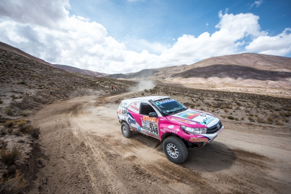 El Rally Dakar 2017 en la jornada de ayer disputó su cuarta jornada de competencia uniendo San Salvador de Jujuy (ARG) con Tupiza (BOL) un recorrido de 522 kilómetros de los cuales 416 kilómetros fueron prueba especial. El segundo cruce de países que tuvo la carrera fue extremadamente difícil por lo exigente de los caminos que hubo que transitar a una altura poco habitual para los mismos pilotos. Alicia Reina y Dante Pelayo pudieron completar el 100% de esta etapa. Los primeros kilómetros fueron muy buenos y a una marcha regular hasta que apareció un problema en la caja de cambios en la SW4. Este inconveniente le privó a la piloto de Catriel poder avanzar y poder cerrar el día de manera normal como lo hizo en otras etapas. En definitiva Alicia llegó al campamento boliviano y el equipo RC Competición trabajó durante toda la noche para recambiar este elemento y encarar hoy la quinta etapa del Dakar que une Tupiza con Oruro a partir de las 11:25 (hora arg). |